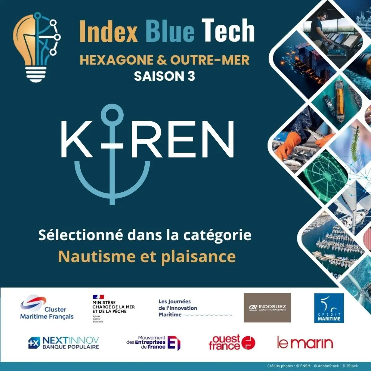 K‑Ren figure pour la 3ᵉ année consécutive dans l’Index Blue Tech, le classement des 40 meilleures start‑up françaises de l’économie maritime.